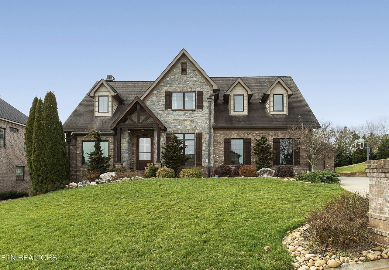 This traditional home and a craftsman touch unite to create a stunning brick and stone home located in Lake Cove. Up the brick paver front walk and onto the gabled front porch, guests and family are welcomed via a large arched front door. Beautiful wood floors and a neutral paint palette unfold and set the stage for you to create the home best suited for you and your sense of style. A spacious dining room with oversized windows allows ample natural light flanks the entry and opposite sits a space perfect for a home office or more intimate living. The primary living area has an open vaulted ceiling, a ceiling high stack stone fireplace and seamless flow into the eat-in kitchen with breakfast bar, ample counter space, stainless appliances, gas cooktop, and a large walk-in pantry/laundry room with wine fridge and extra shelving for small appliances, glassware and serving pieces. The primary suite has plenty of room, a tray ceiling, and an attached bath with walk-in shower, dual vanities, jetted tub, plus a large walk-in closet with built-in shelves, drawers and racks for all your clothes. The upper level has an open gallery connecting a cozy reading nook to the two remaining bedrooms, full bath and bonus room with additional space for movie watching, gaming, hanging out or hosting slumber parties. Off the back of the home rests an enclosed porch where you can enjoy the outside while remaining warm in the winter and cool in the summer. Beyond the porch and patio rests an inground pool with an exterior kitchen and bar plus ample decking space for enjoying the sun and a full fireplace to enjoy on cool fall and winter nights. Located within the small community surrounding Choto where local eateries and coffee shops await - this home is where you belong!