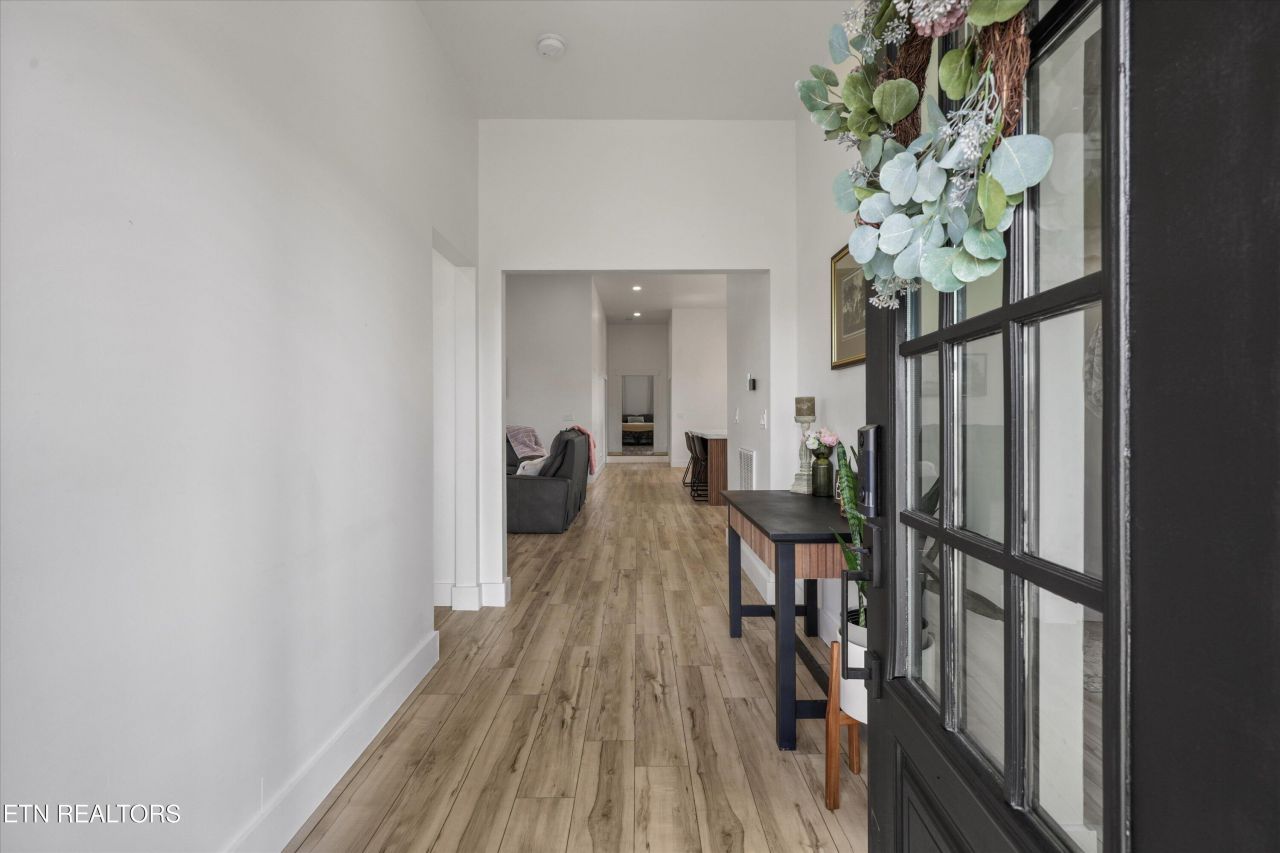 Rare opportunities don't come like this often. Here is your chance to own a stunning renovated church, perched atop the end of a beautiful dogwood lined drive on 2.87 acres of premium, unrestricted land. Located in the heart of Loudon, just around the corner from Lake Tellico, The Yacht Club, and Rarity Bay Golf and Country Club, offering the ultimate playground for recreational vehicles and lake life right at your doorstep. The entire home has been skillfully re-designed, featuring 5 bedrooms and 3.5 baths, including a main level primary suite with laundry room, as well as a second laundry area downstairs alongside a spacious flex space that has been fully plumbed for a second kitchen or wet bar, perfect for a multi-generational setup or a premier entertainment hub. Micro cement showers and countertops blend with organic wood and stone finishes making for an earthy vibe throughout this home. The numerous windows have been expanded and updated to ensure maximum exposure to natural light, showcasing soaring vaulted ceilings and creating a feeling of expansive open-air throughout the home as well as incredible views of both sunrise and sunset. All systems have been updated to include electrical wiring and panels, tankless water heating system for endless hot water, new furnace, drywall, and insulation throughout the home. Every detail was considered from foundation to finishing touches. The owners spared no expense in ensuring the longevity of this home with the exterior perimeter backfilled and geofabric installed and topped off with a Master Dry waterproof system (WaterGuard, CleanSpace, and IceGuard technology) to ensure the foundation remains as pristine as the finishes. As a nod to its history, the original church bell remains above the entryway which can be re-openend be re-roped for the new owners at closing, ready to ring in your first day of ownership!