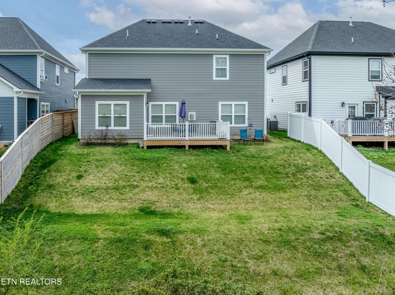 Welcome to this stunning two-level home in one of Blount County's hottest neighborhoods that is almost sold out! Better than new construction, this home features over $6,000 in fresh interior paint, wallpaper, and numerous thoughtful upgrades throughout. The open floor plan is designed for modern living, with the great room seamlessly connecting the kitchen, dining, and living areas--perfect for entertaining or relaxing with family. The chef's kitchen is stacked with granite countertops, a large island with bar top seating, stainless steel appliances, subway tile backsplash, stainless hood vent, built-in microwave, pantry, and abundant cabinet space. A convenient drop zone with cubbies and a laundry room on the main level add everyday functionality.The spacious living room features a cozy gas fireplace and ceiling fan, while the main-level owner's suite offers a trey ceiling, ceiling fan, walk-in closet, and a luxurious bath with double vanities, tile flooring, tile walk-in shower, and linen closet. Upstairs you'll find three additional bedrooms and a versatile media or flex room. Two bedrooms share a Jack-and-Jill bathroom with double vanities, while the third bedroom enjoys its own private en suite--giving every bedroom direct access to a bathroom for ultimate comfort and privacy.Step outside and enjoy the TREX deck overlooking one of the best views in the subdivision with peaceful farmland behind. Situated on a cul-de-sac, this home offers both privacy and scenic surroundings while still being conveniently close to the city without paying city taxes. Additional features include upgraded two-panel doors with heavy-duty door levers throughout, blinds throughout the home, Hardy board and stone front exterior, carriage-style garage door, epoxy garage floors, and a huge storage area. This beautiful home offers main-level living with plenty of space for family and guests in a convenient location --an incredible opportunity you won't want to miss.